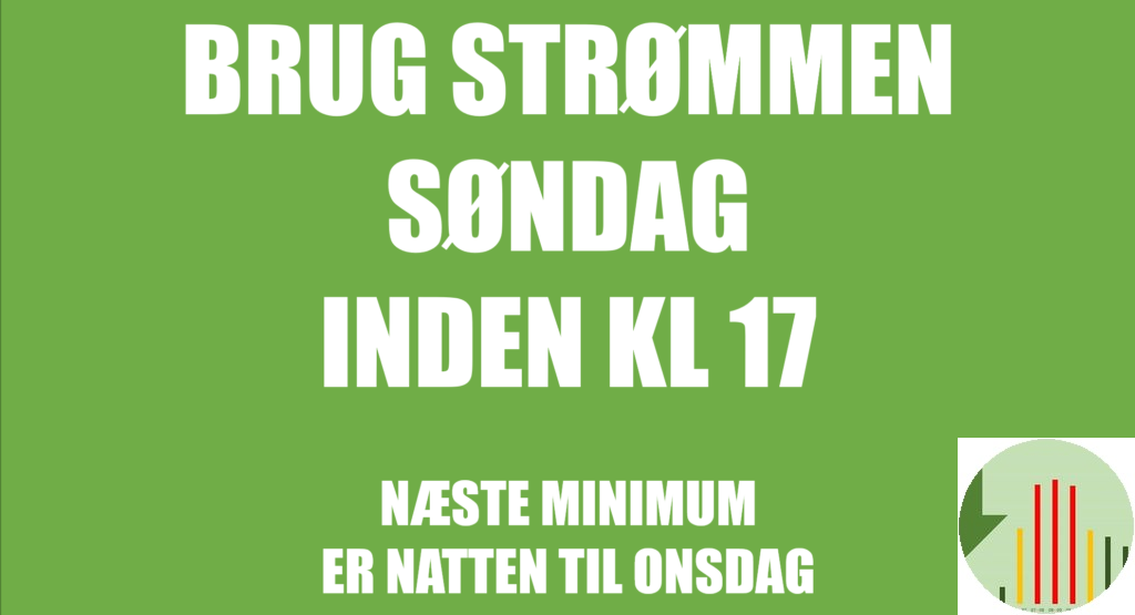 Som ventet har vi strømfest søndag. Vest for Storebælt rammer vi bunden kl 00, øst er med i bund fra kl 04.