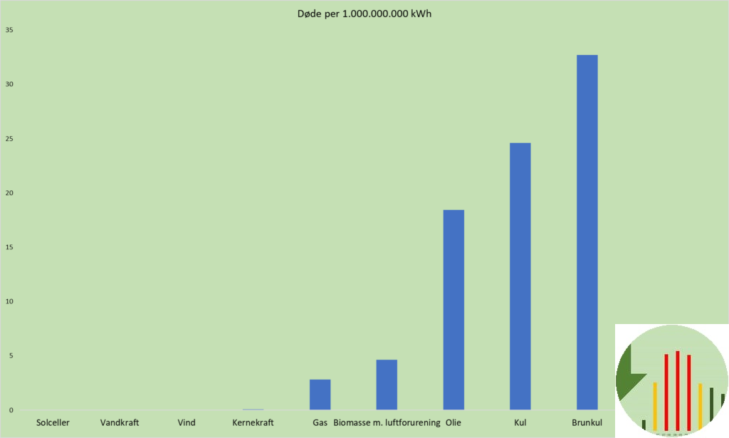Tallet dækker over hvor mange menneskeliv der går tabt ved produktionen af 1 TWh strøm, eller 1.000.0000.000 kWh.