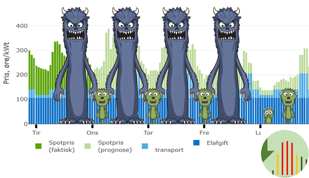 Der er meget ballade om de høje elpriser denne uge. Det er tydeligt, at jo simplere man kommunikerer, jo bedre, så i dag nøjes vi med en elprisprognose i plakat-til-børneværelse-format.