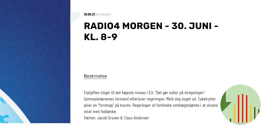 Radio 4 havde fredag morgen to indslag om nye elafgifter der rammer os fra i dag lørdag.
