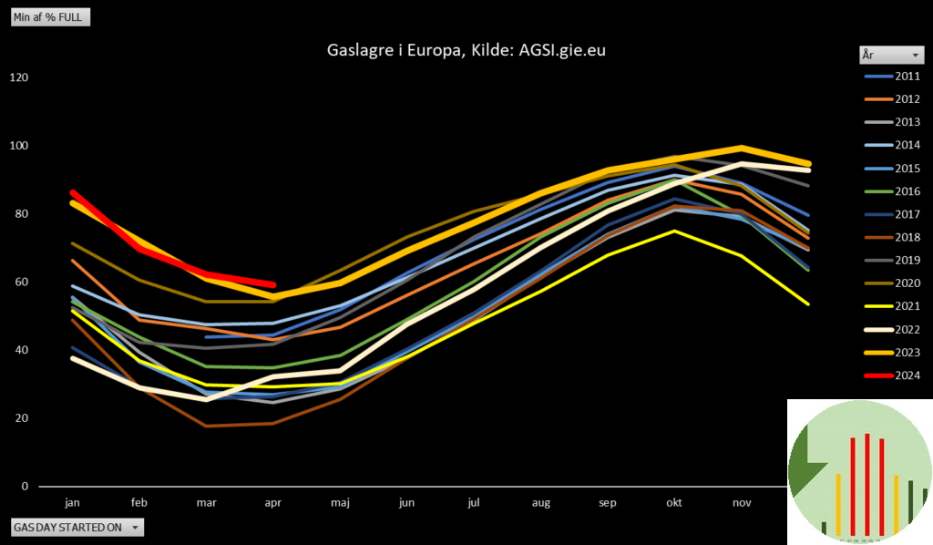 Dertil kommer, at de næste fire uger er varmere end normalen, så vi kommer nok meget snart til at lægge gas på lager. Det er tidligt på året.