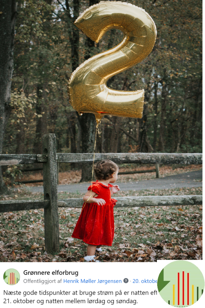 I dag har Grønnere elforbrug to års fødselsdag, i dagens billede kan du se et klip af det allerførste opslag om fremtidige elpriser, fra 20. oktober 2021. Det er mig bekendt første gang forbrugerne i et land fik indblik i elpriserne mere end 36 timer frem.