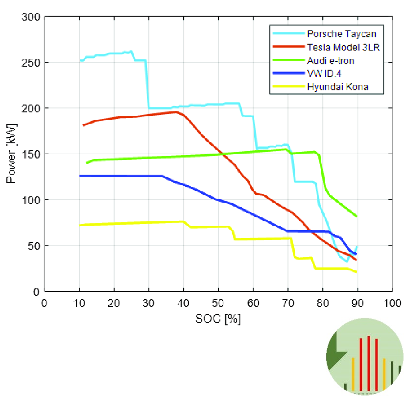 Jeg har ved et tilfælde været forbi den samme elbil-lynlader en del gange de seneste uger. Laderen kan lade med 300 kW, og næsten alle biler har ladet med 40-50 kW hastighed.
