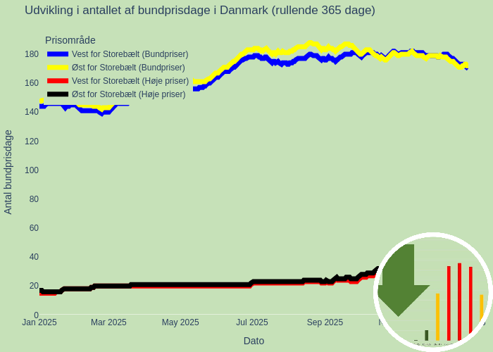 ⚡️ Bundpris er under 10øre/kWh (rå elpris) og varer fra midnat til fredag kl 06 i 🌬 god blæst. Rimelig elpris varer til hen i næste uge.⚡️ Her er nogle interessante tal på hvor tit vi har bundpriser i elmarkedet – det er næsten halvdelen af årets 365 dage: Vest for Storebælt: – Der har…