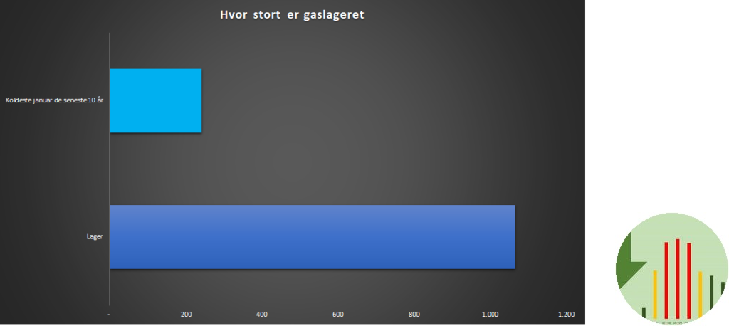 Europas gaslagre er ret godt polstrede; over 90% for de fleste, og det er tidligere på året end det plejer. Jeg prøvede at sammenholde det aktuelle lager med udtrækket den koldeste januar de seneste 10 år, og dem kan vi klare fire en halv af uden at gaslagrene i Europa løber tør.