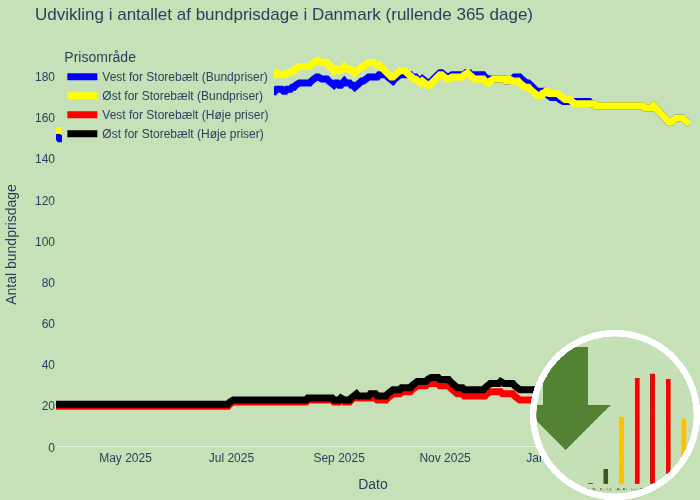 Det er et tegn på at vintersæson skifter til forårssæson, hvor elforbrug er lavere og solstrøm er større. Det betyder at frokostpris nu oftere er lavere end natpris.