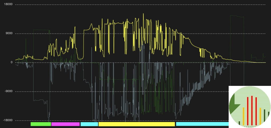 fase 2 (pink): Batteriet er nu tømt, og elprisen er faldet en anelse. Så nu lader min elbil med overskuds strøm fra solcellerne hvor der kun sælges minimalt og slet ikke købes noget strøm fra nettet.