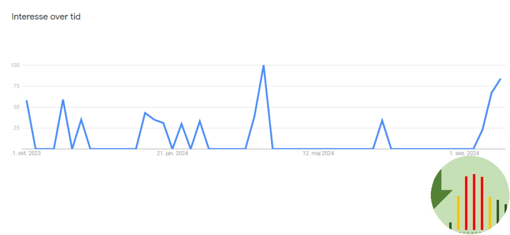 Begge skift kan ses i Googles oversigt over søgninger. Dagens graf er fra Google, og viser interessen for ‘tariffer’ det seneste år. Man kan også se, at mange medier havde forberedt historien, så sidste uge i Oktober begyndte interessen at stige.