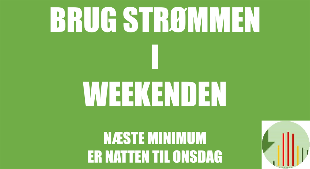 Elpriserne er som forventede gode i weekenden. Natten til søndag er bedst, søndag eftermiddag er også god, så selv om elpriserne ser tillokkende ud for lørdag anbefaler jeg at vente længst muligt med at bruge strøm.