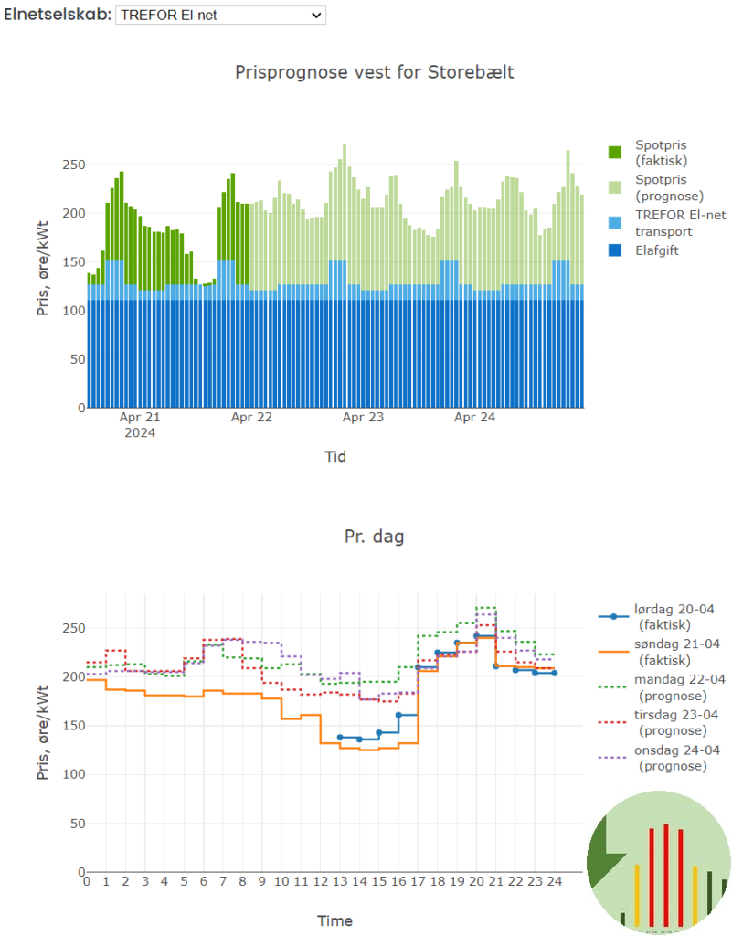 Dagens illustration er elpriserne her i Fredericia for i morgen og prognose for de kommende dage.